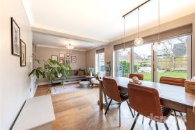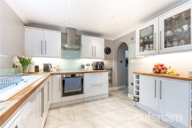 * The centrepiece and beating heart of this wonderful family home and perfect for socialising is the open plan breakfast kitchen, family and dining area with spotlights to the ceiling and underfloor heating throughout. The kitchen boasts wall and base units, work surfaces with splashbacks, one and a half bowl ceramic sink with drainer and mixer tap above. Integrated appliances to include Samsung oven and induction hob over and space for a dishwasher. The family area benefits from a built-in feature media wall and Bi-Folds lead out into the rear garden. An archway leads into;