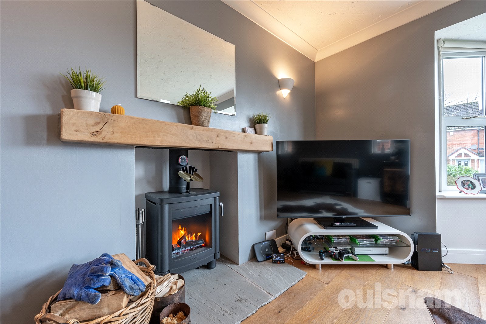 * The lounge boasting dual aspect, double glazed bay window to the front and log burner with feature oak mantel above;