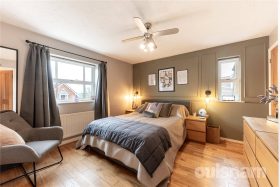 * Bedroom one is of a generous size and boasts dual aspect, fitted wardrobes and a contemporary en-suite shower room which is tiled floor to ceiling and includes dual flush W.C, vanity unit housing the sink and a heated towel rail. There is an obscure window to the side;