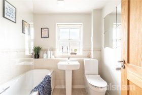 * The family bathroom having tiled flooring and comprises a three piece white suite to include bath with shower over, wash hand basin and dual flush W.C. There is an obscure double glazed window to the rear;
