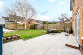 The recently landscaped rear garden is enclosed within fenced boundaries, featuring an initial paved Porcelain patio, planters, trees and the rest laid mainly to lawn. There is a useful outside tap, electric points, shed having power to it, log store and side access to the front of the property.
