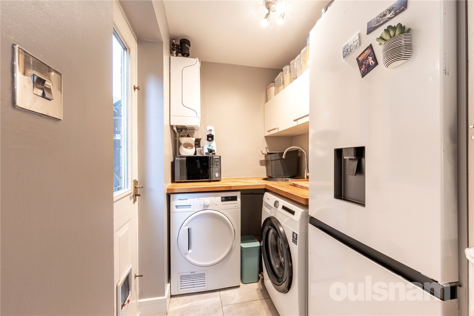* The utility having space & plumbing for a washing machine, tumble dryer and freestanding fridge/freezer. There is a double glazed door leading out to the side elevation;