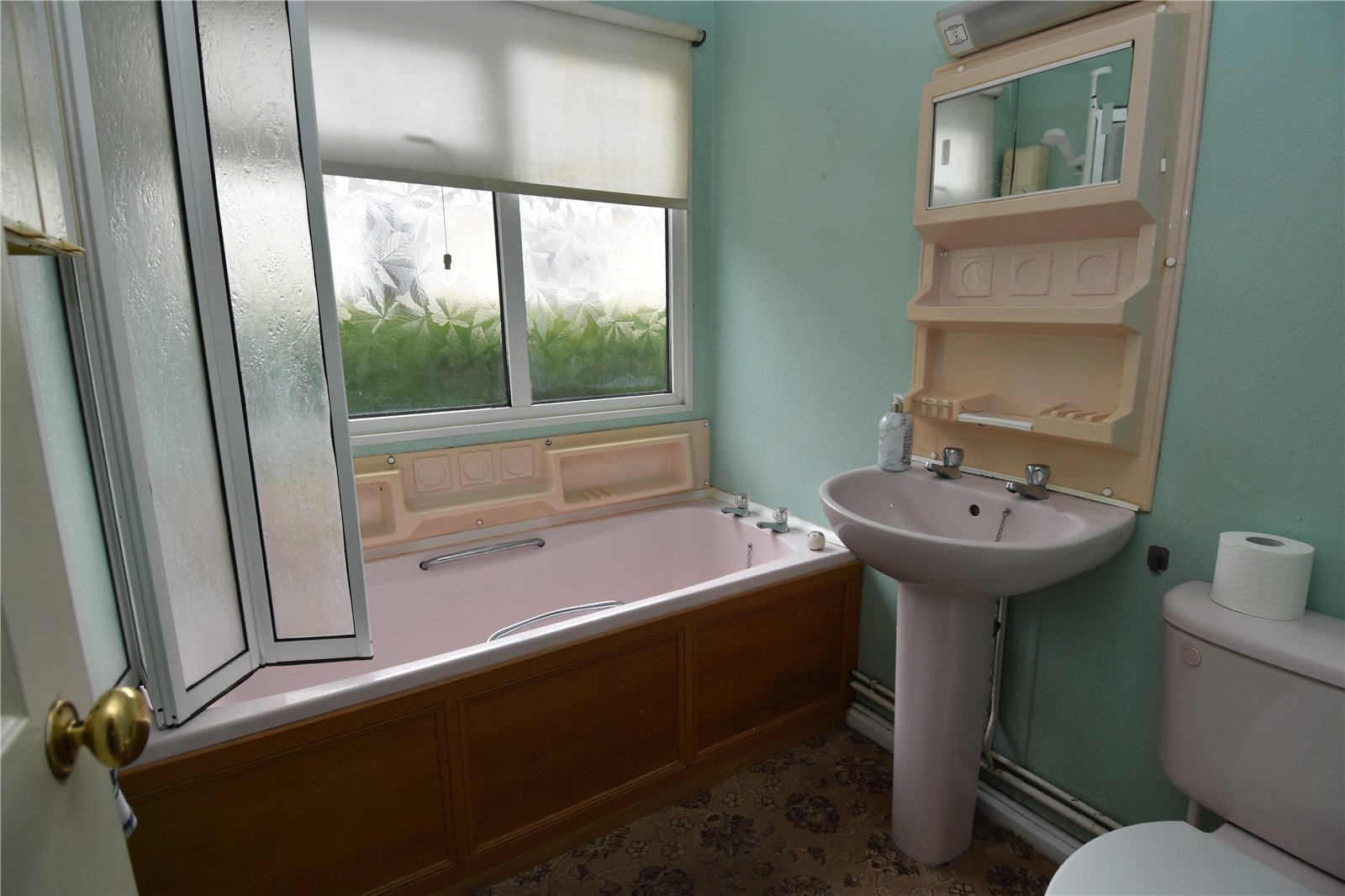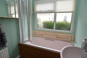 * Bathroom comprises a coloured suite with a WC, pedestal wash hand basin and bath with shower over