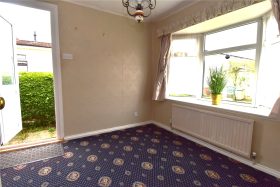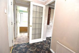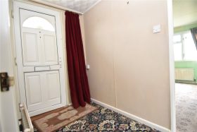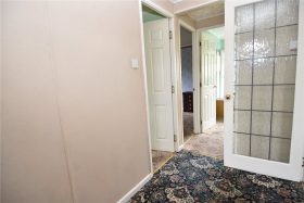 * Entrance hallway has useful storage cupboard and further storage cupboard with shelving. Doors lead into the living room, both bedrooms and bathroom