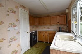 * Kitchen is fitted with a range of wall and base units along with space for freestanding appliances and useful storage cupboard with shelving
