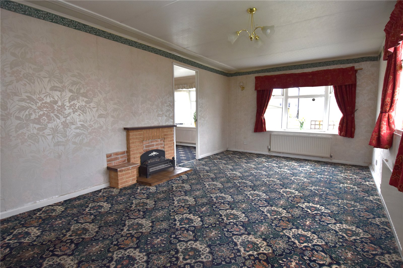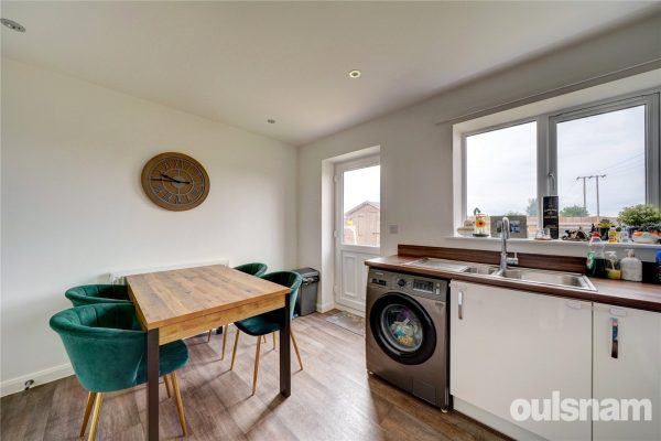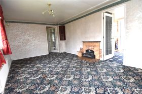 * Generous dual aspect living room with feature fireplace, door leads through to the dining area with built in storage cupboard housing the gas central heating boiler, door onto side elevation and opening through to the kitchen