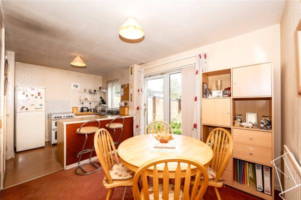*Kitchen/Diner with base units, work surfaces over with inset sink drainer, double glazed window to the rear and door to