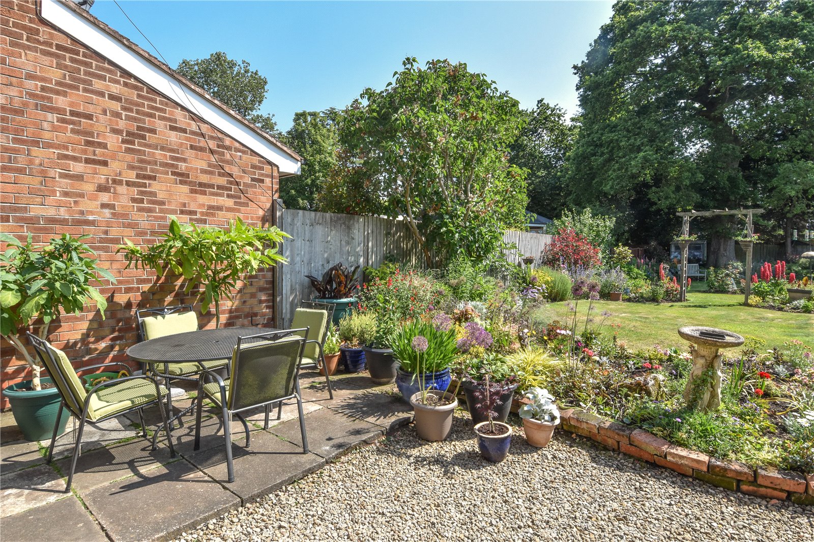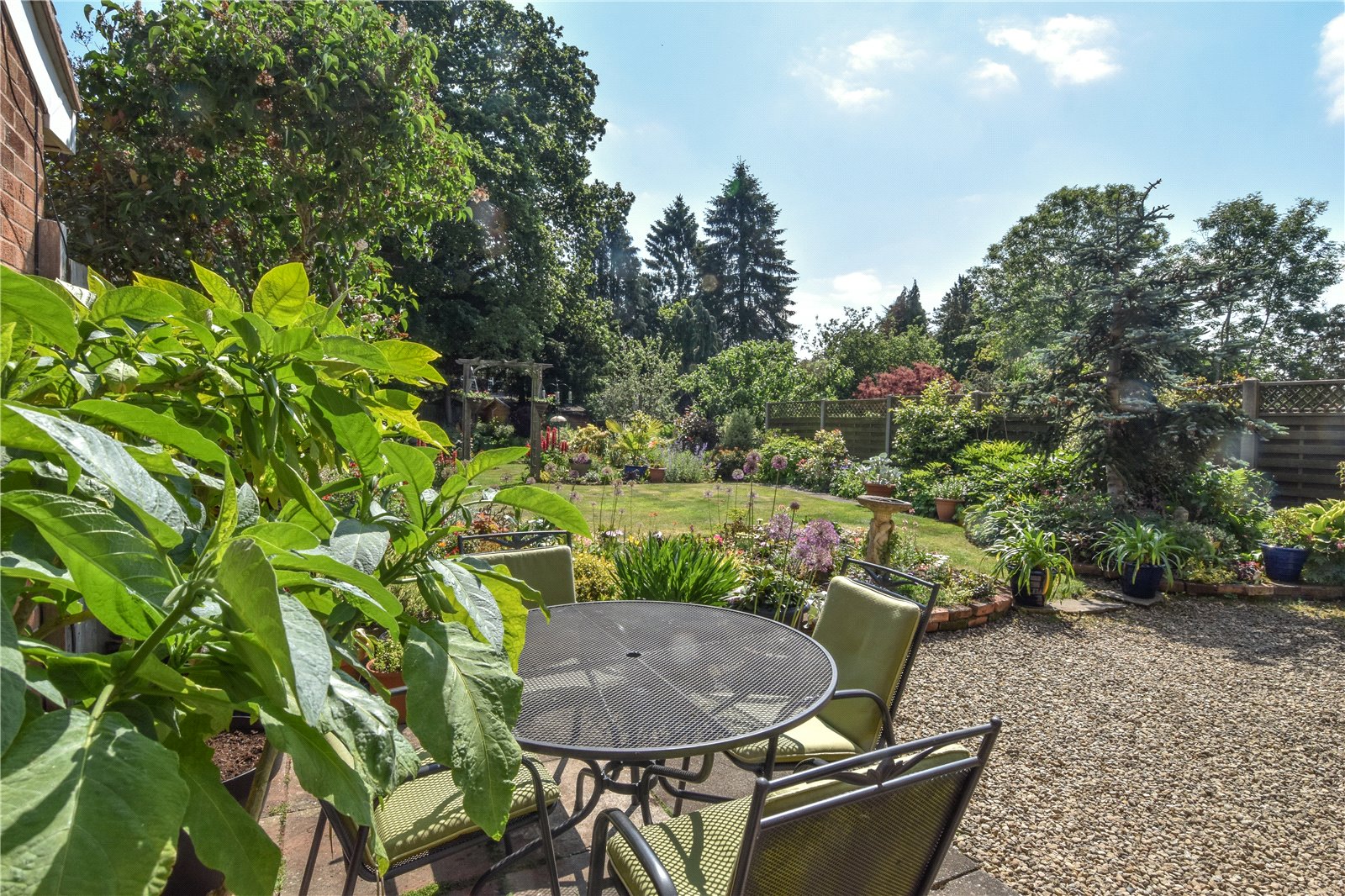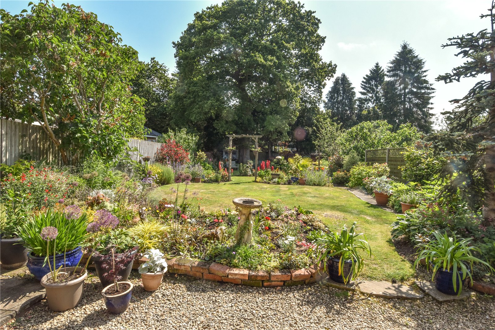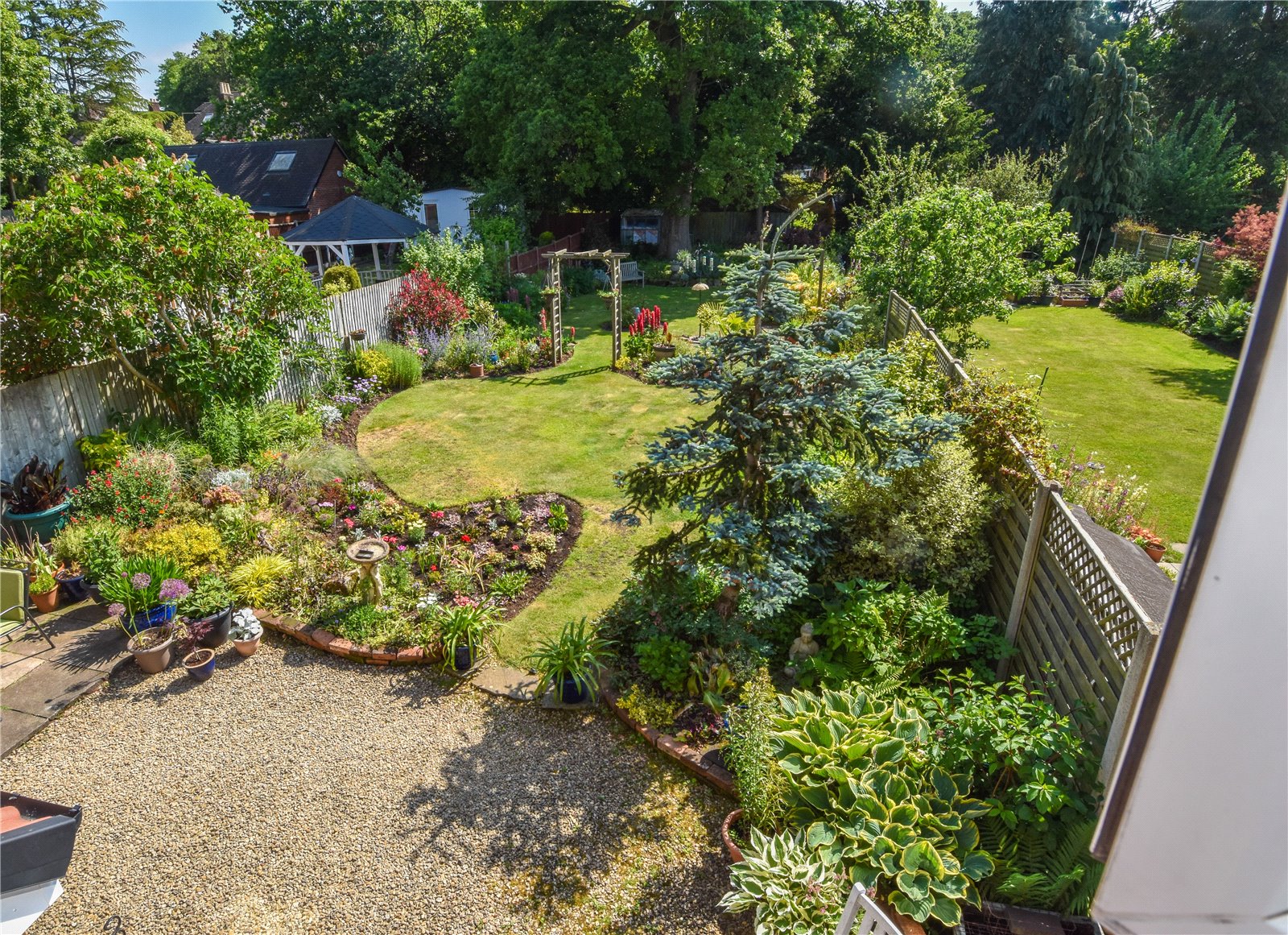 The property has a single garage and stunning landscaped gardens to the rear with large terrace/outdoor entertaining area, shaped lawn with mature borders stocked with a wealth of shrubs and flowering plants and with many specimen plants and secluded seating areas.