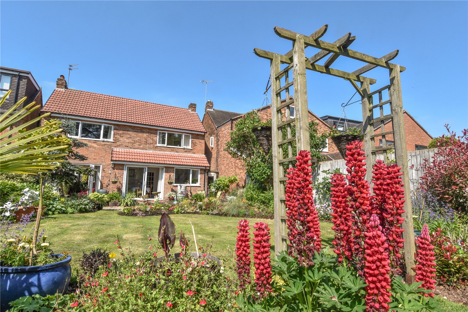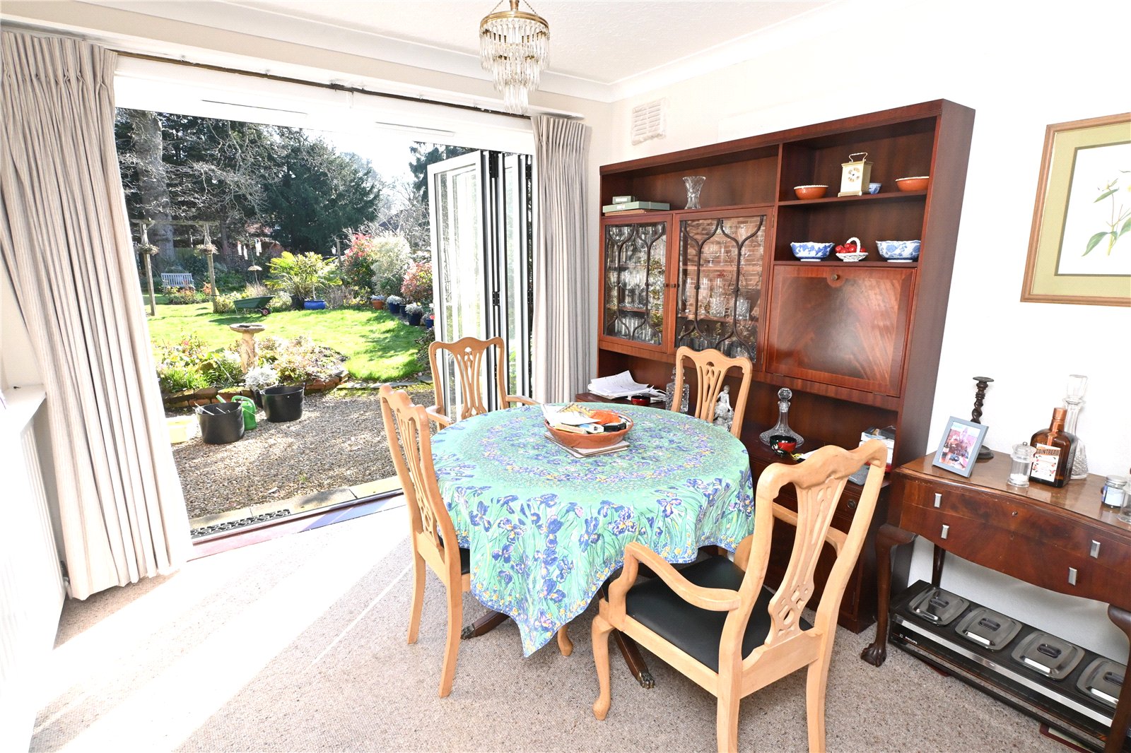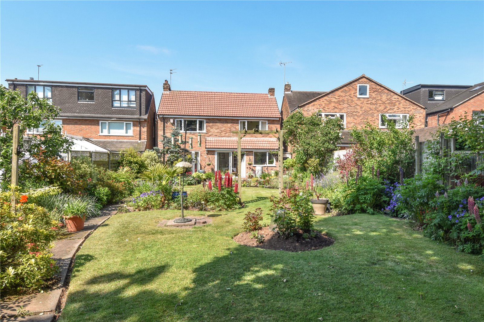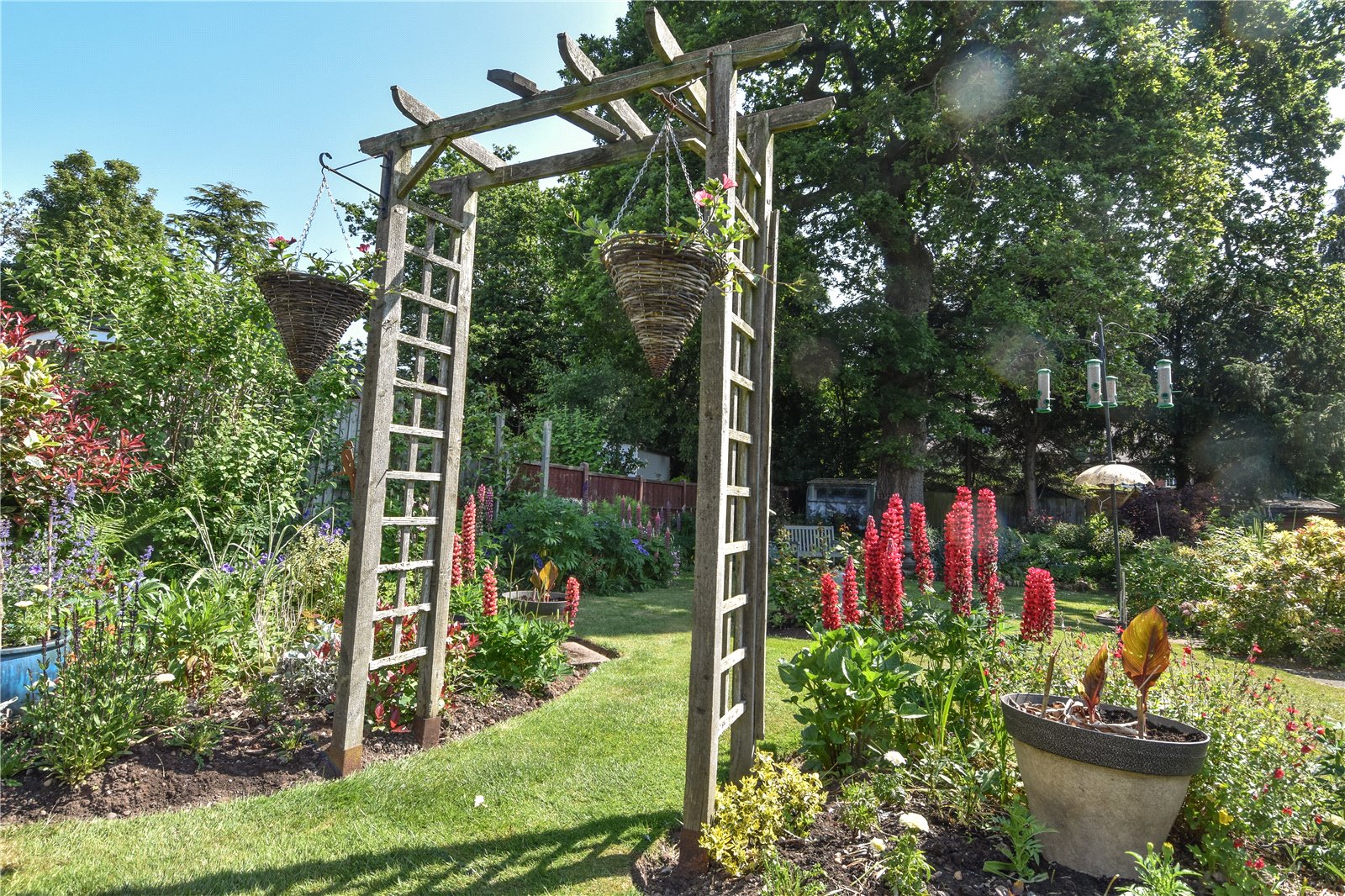 The property has a single garage and stunning landscaped gardens to the rear with large terrace/outdoor entertaining area, shaped lawn with mature borders stocked with a wealth of shrubs and flowering plants and with many specimen plants and secluded seating areas.