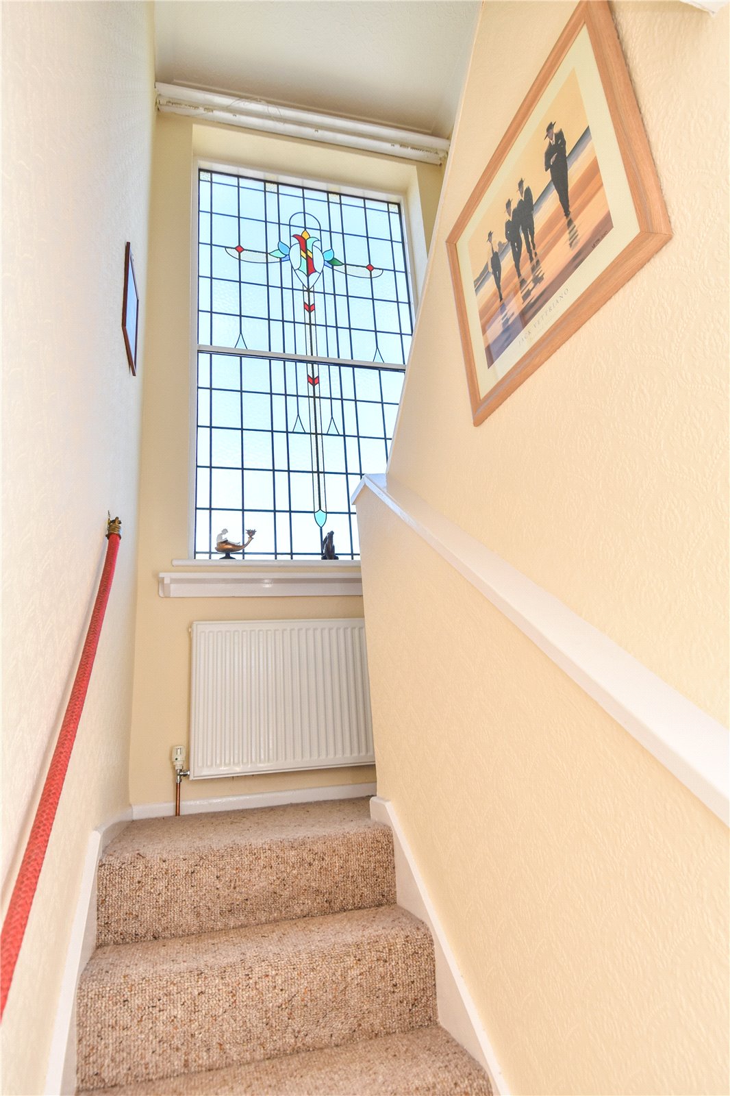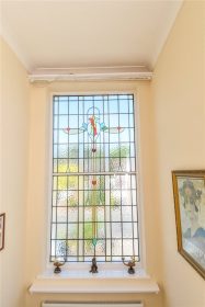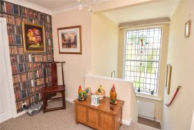 The attractive first floor landing is approached via a return staircase with feature double glazed original portrait window with ornate stained glass design. Panelled doors lead to three bedrooms and a shower room. Bedroom one has a full width range of fitted wardrobes with panelled mirrored doors. Bedroom two is a generous double and has a recently fitted range of wardrobes & bedroom three is currently used as a study.