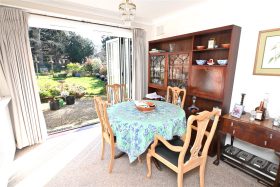 The elegant sitting room has an Art Deco style fireplace, double glazed double doors to the rear garden, additional leaded double glazed window to the front and ceiling cornicing. The dining room has double glazed bi-fold doors to the delightful landscaped gardens.