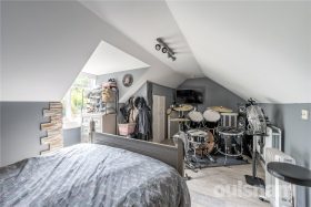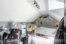 The study having a window to the front elevation and stairs lead to the attic room which, is a spacious double bedroom with built-in wardrobes, eaves storage, and a rear-facing window enjoying garden views.