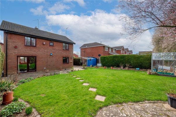 Ther rear garden can be accessed from the conservatory, utility room and the side access. Being mainly laid to lawn with well-manicured flowerbed borders, a paved patio area, hardstanding suitable for a shed and is enclosed with wooden panel fencing