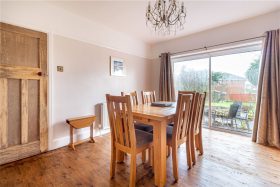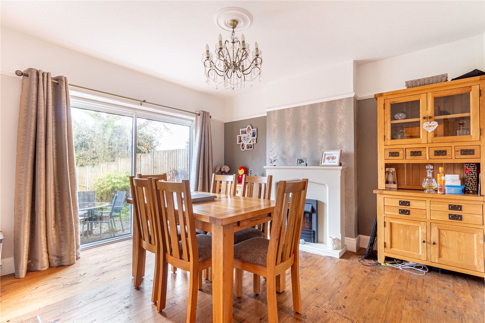 * The dining room also boasts a feature fireplace with electric fire inset and a double glazed sliding patio doors leading out to the rear garden;