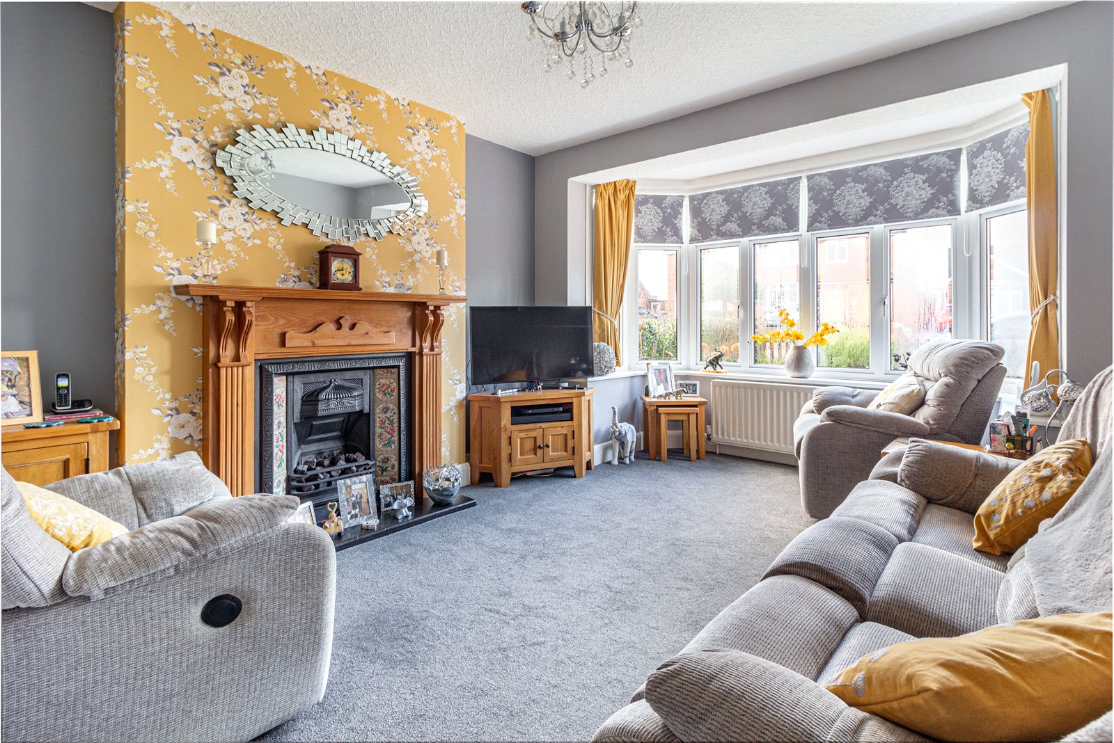 * The lounge boasts a feature fireplace with gas fire inset and double glazed bay window to the front elevation;
