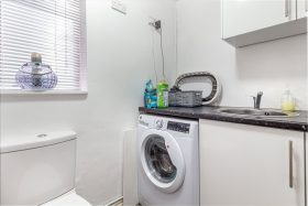 * In the rear lobby, there is a door into the garden and a door giving access to the utility room/WC where there are further wall mounted and base units, as well as space and plumbing for a washing machine. There is a double glazed window to the rear elevation;