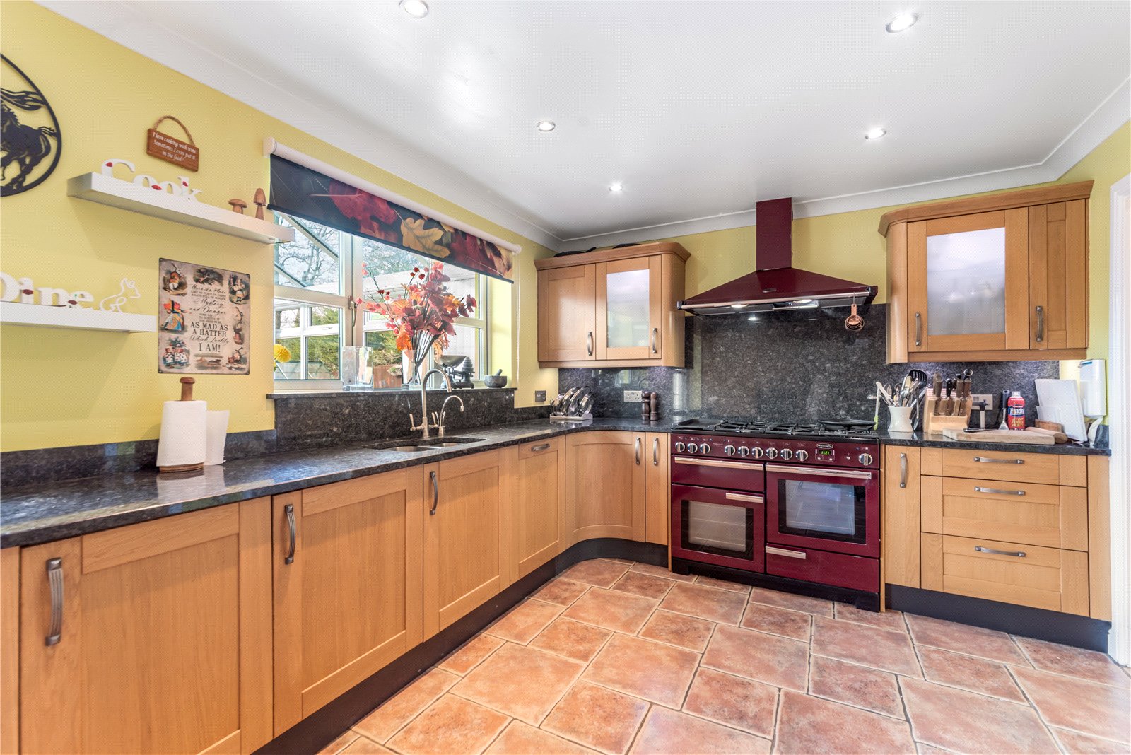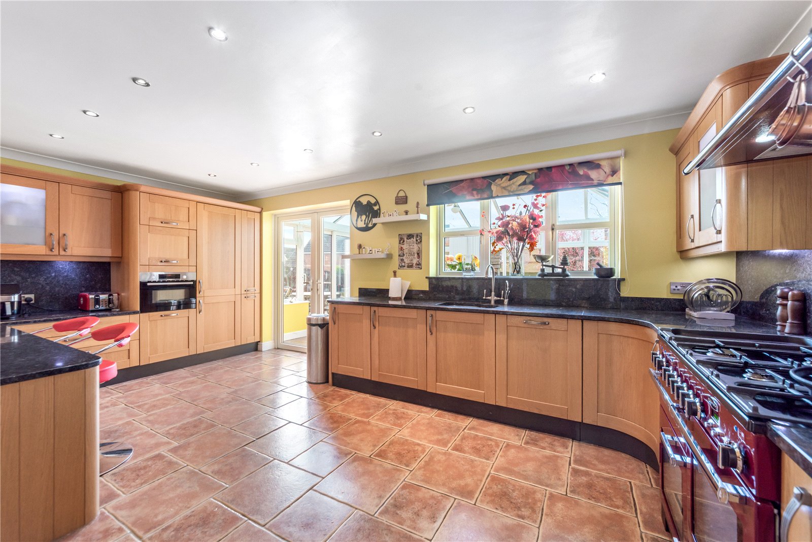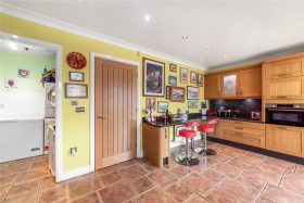 The spacious kitchen/dining room is beautifully appointed with granite worktops and matching splashbacks, an extensive range of wall and base units, and a stainless steel one-and-a-half bowl sink with mixer tap, filtered and boiling water tap. Integrated appliances include a fridge, freezer and dishwasher, complemented by a Rangemaster cooker with extractor and full-height splashback.