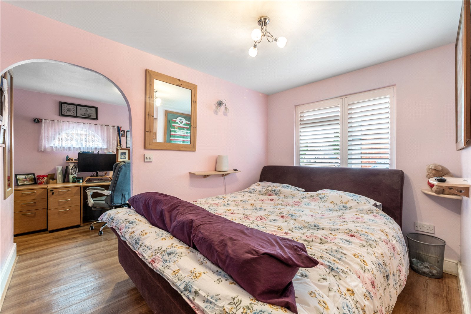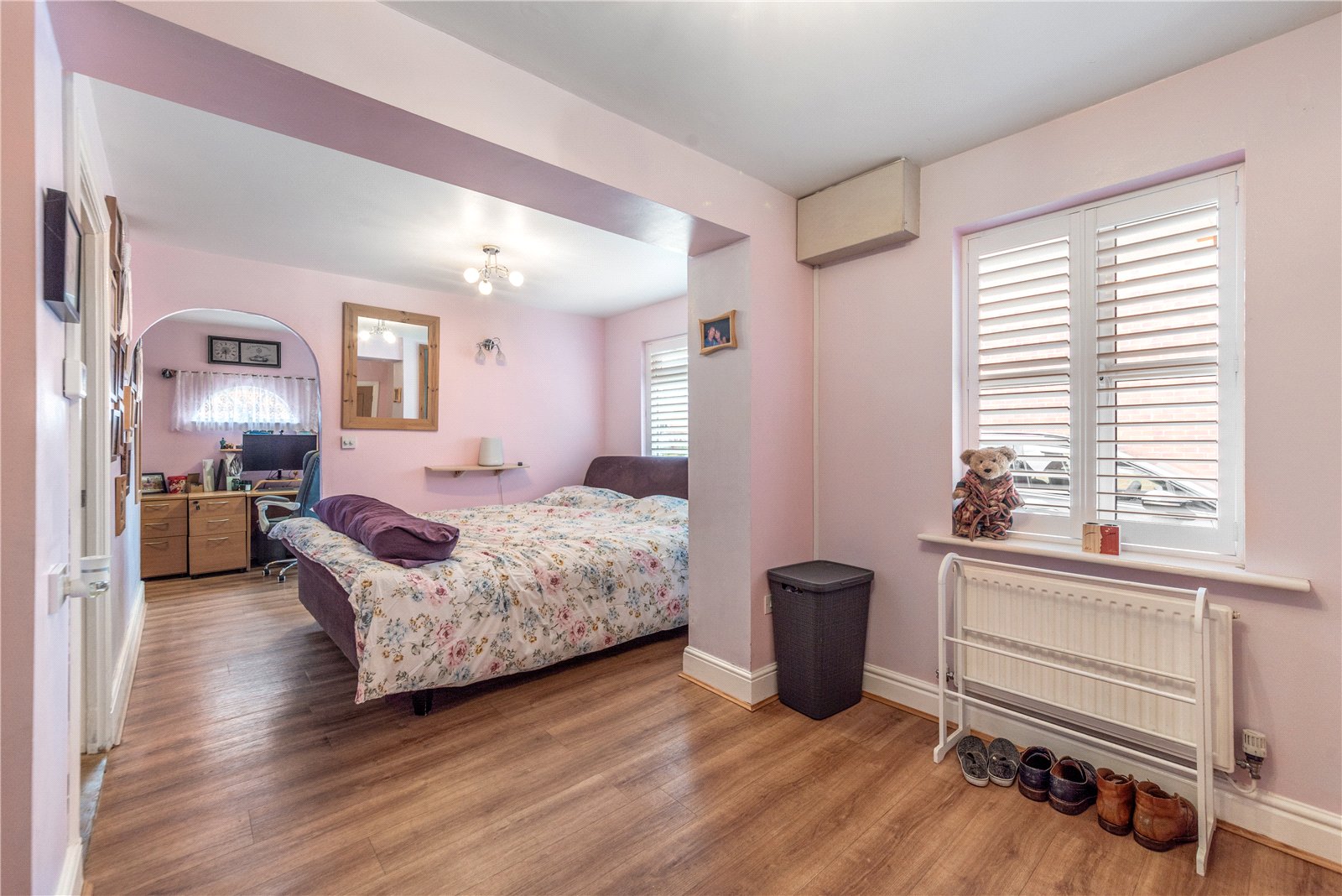 The property is approached via a generous driveway, providing ample off-road parking, and is entered through a welcoming hallway with oak LVT flooring and oak doors.