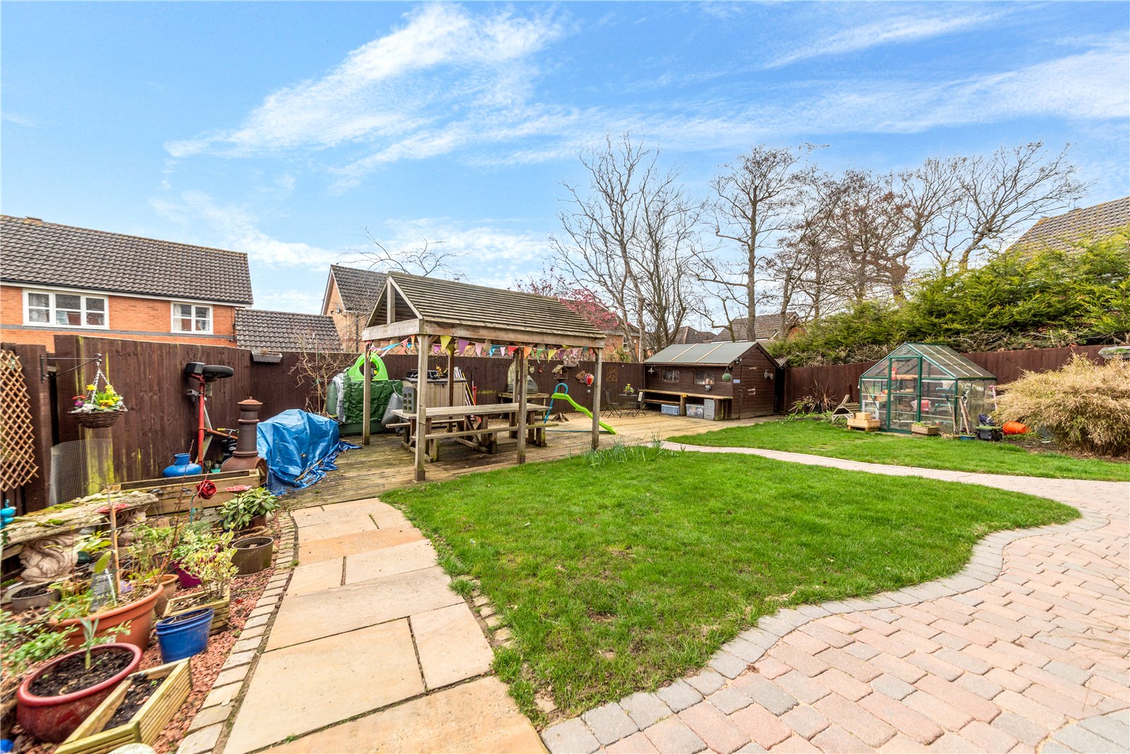 The beautifully landscaped rear garden features a central timber built garden gazebo providing a superb covered entertaining area. There is also a workshop to the rear of the garden with power and light and a greenhouse to be included.