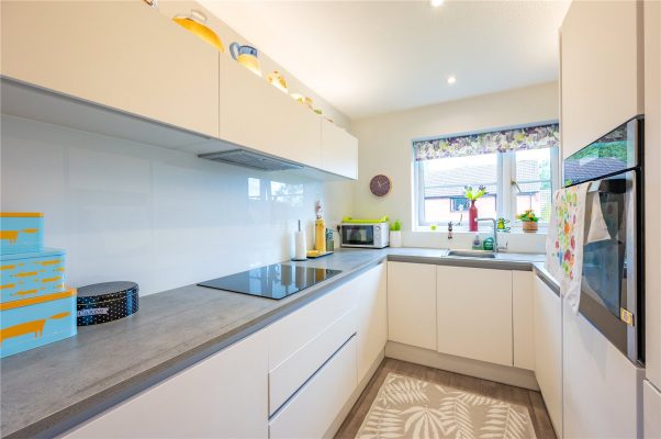 The reception hall with a laminated floor, a fitted storage cupboard with sliding doors, access to the loft space and doors to the sitting room and kitchen. The kitchen has a range of base units with working surfaces over, stainless steel single bowl sink unit, integrated, oven, hob and extractor, wall units, plumbing and space for washing machine and dishwasher, space for fridge freezer and a serving hatch to the sitting room.