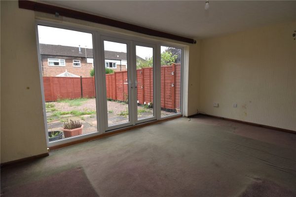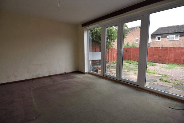 Living room which has a feature fireplace with an inset gas fire(which is not currently connected to the gas line), glazed sliding doors used to access the rear garden and an internal door to the,