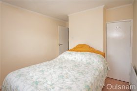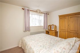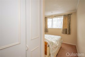 Bedroom three which has access to a store cupboard and a window looking out to the rear.