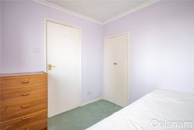 Bedroom two which has access to two store cupboards and a window looking out to the front.