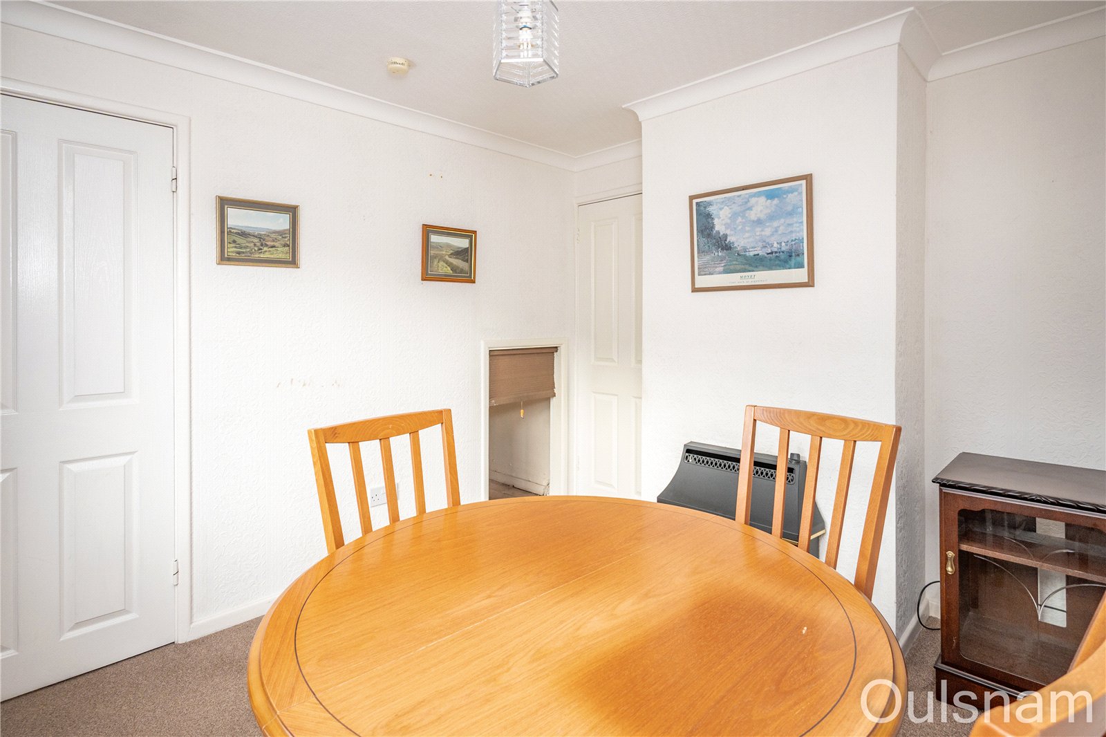 Dining room which has a gas fire, access to a store cupboard, a window looking out to the front and a door to the,
