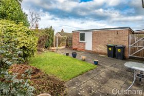 Rear garden which has a patio, a turfed lawn and a wealth of mature trees, bushes and foliage. There is gated side access and a door to a brick built store which has a UPVC window.