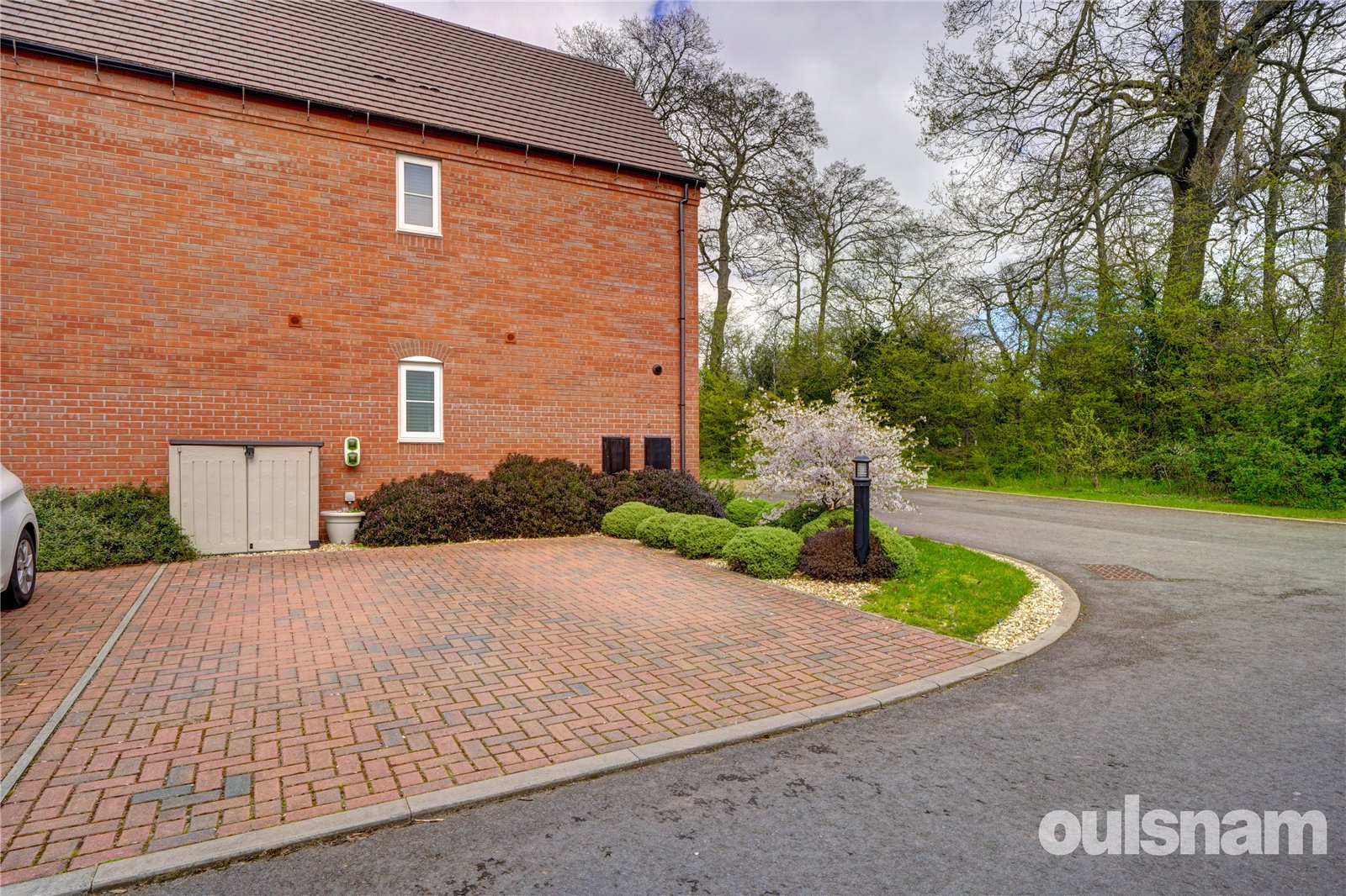 * Lawn border to the front and pathway to the front entrance. To the side is the block paved parking area where there are two side by side allocated parking spaces and further visitor parking allocated spaces