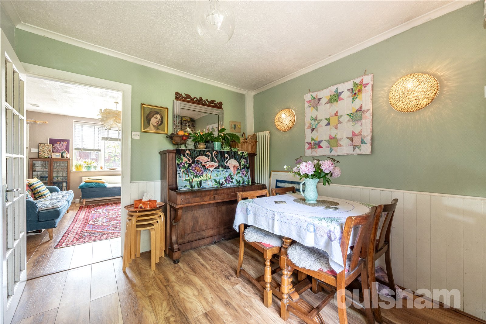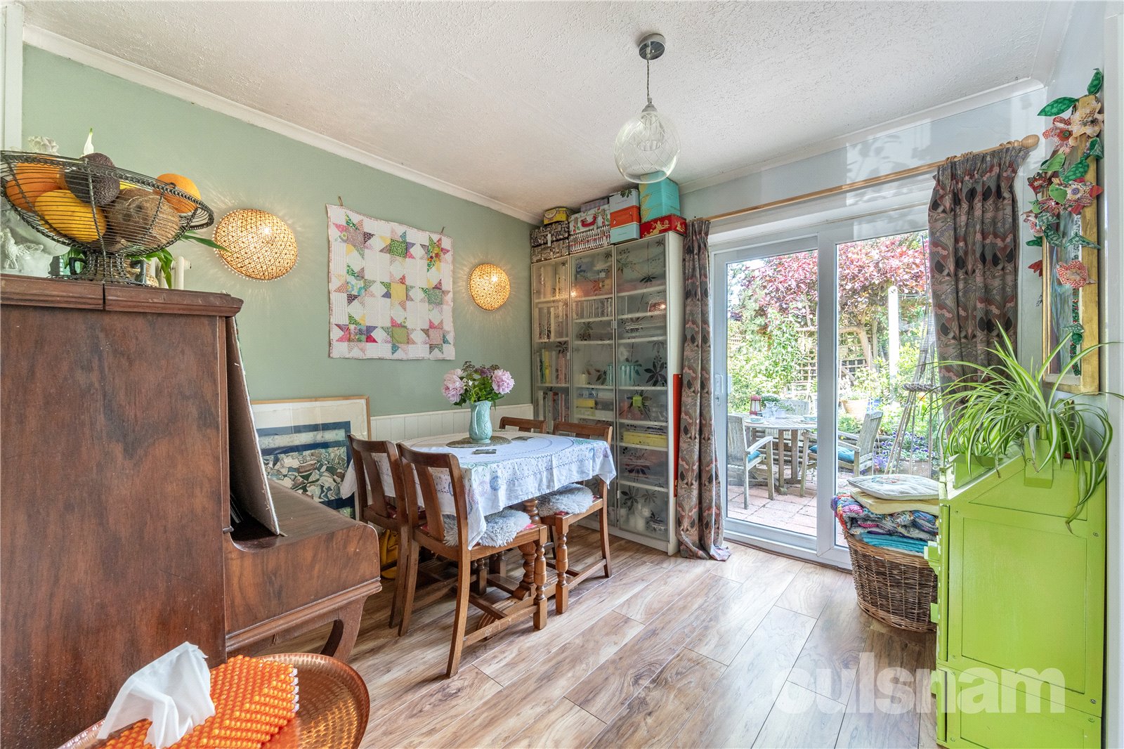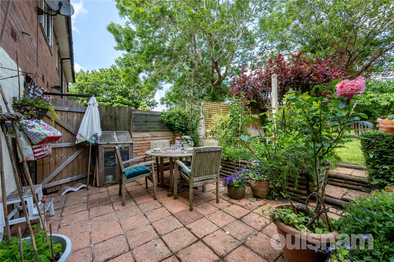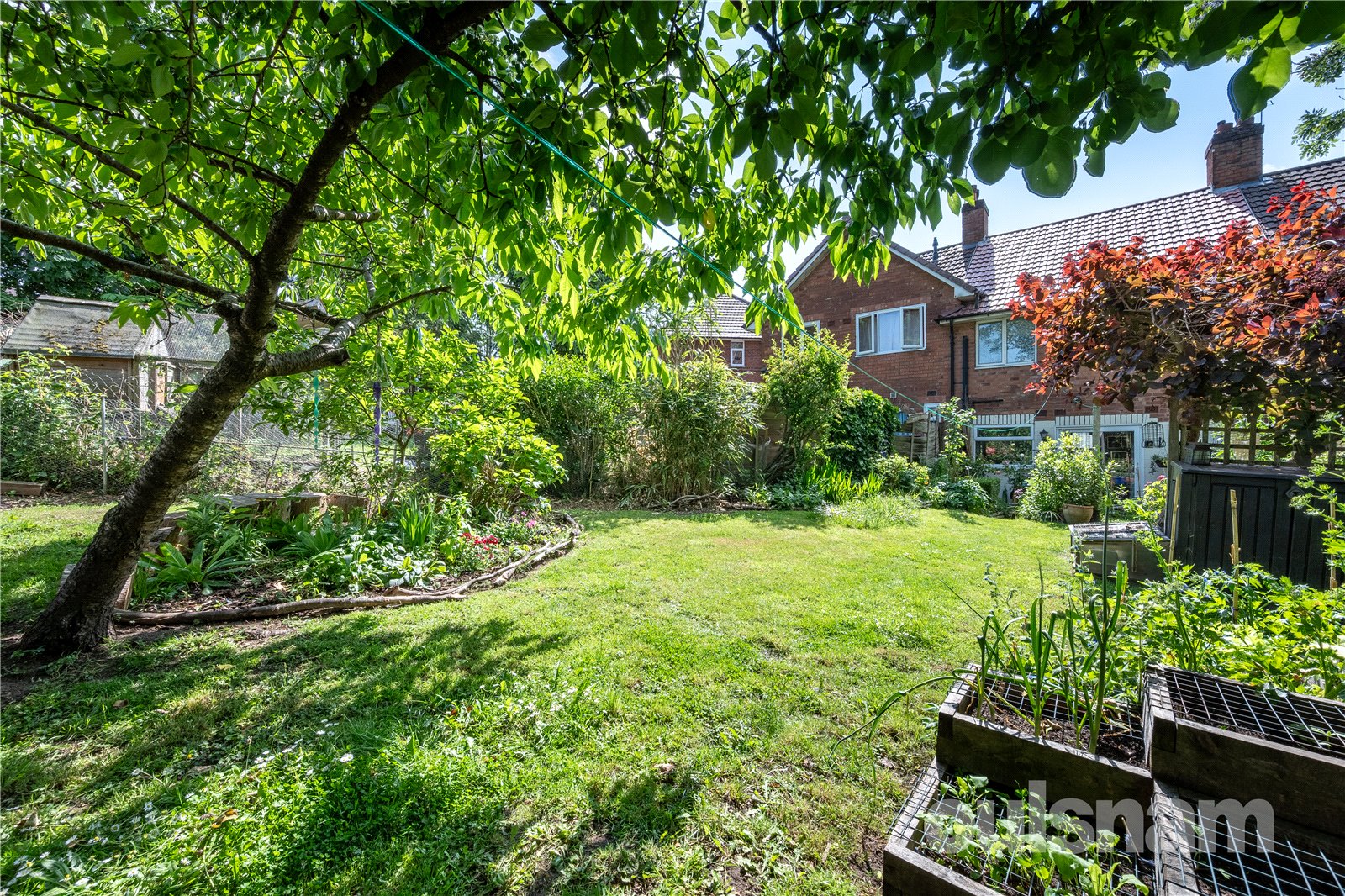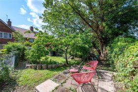 * Delightful and private rear garden, with patio area and side gate along with outside tap, steps up to the lawn with well stocked flower beds to side, seating area to the side with slate chippings, additional raised seating area to the rear, ideal for the evening sun. Raised sleepers for home grown vegetables, and further flower bed flanked by reclaimed tree trunks.