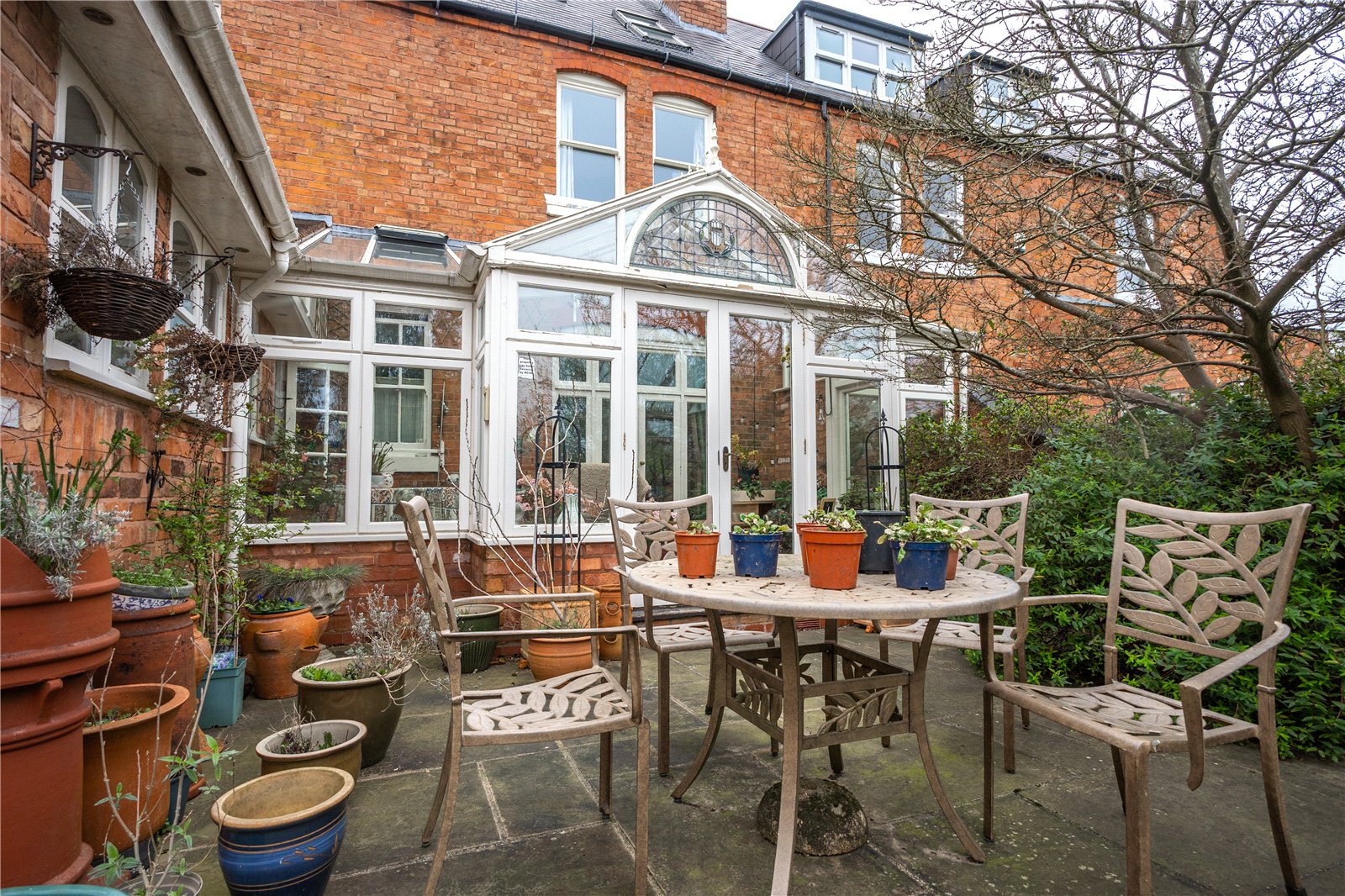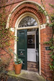 Set back from the road behind a low level brick wall with wrought iron double gates leading to a blue brick pathway flanked by mature planting beds with established shrubs. Access is given to double wooden doors with Gothic style arched top light over leading to the entrance vestibule with original Minton tiled floor and panelled inner door with ornate stained glass inset flanked by matching side windows to the reception hall.