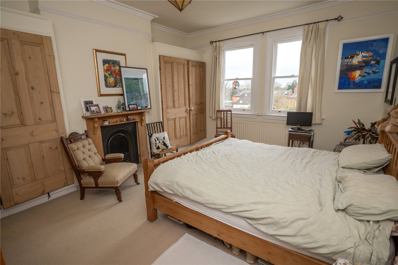 There are three double bedrooms with period fireplaces, cornicing & picture rails and fitted wardrobes. The large bathroom has a white suite comprising panelled bath, pedestal wash hand basin, low level w.c. and large shower cubicle.