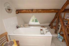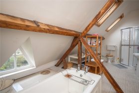 The second floor landing leads to three further double bedrooms, one fitted with a kitchenette area and an impressive bathroom with exposed beams and lintels, white suite and double glazed skylights.