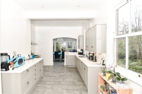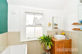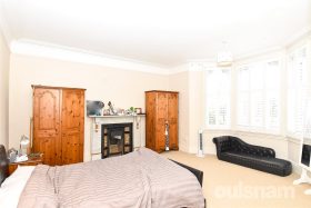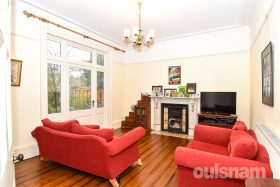 * The first floor offers three well-proportioned double bedrooms, each retaining charming feature fireplaces that enhance the period character of the home. The largest bedroom is particularly impressive, benefiting from a large bay window that fills the room with natural light. This room also enjoys the added advantage of an ensuite, fitted with a W.C. and a shower cubicle.