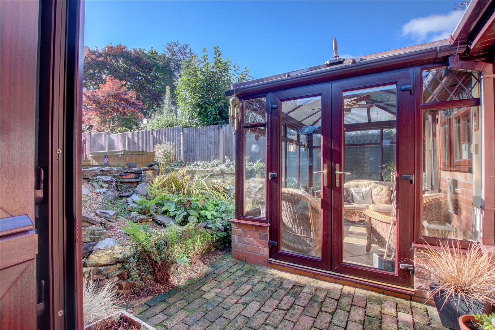 The landscaped rear garden is private and beautifully maintained; interspersed with many mature trees and evergreen shrubs providing colour throughout the year. Spring and summer flower beds, ornamental pond, and private patio area situated at the top of the garden.