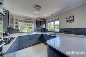 The front garden is low maintenance and has mature shrubs and pathway leading the front door.
