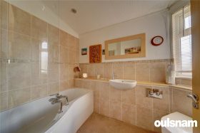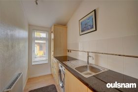 * Separate Utility room is fitted with light wooden fronted wall, drawer and base units with black rolltop work surfaces fitted over, incorporating stainless steel sink and drainer unit with mixer tap over, space for a washer dryer, double glazed window to the rear elevation and LPG fired central heating boiler concealed behind a matching cupboard unit.