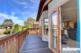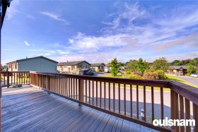 * There are lawn garden areas to the front, rear and side with steps leading up to the side wooden decked sun terrace and patio area which overlooks the Green to the side elevation and navigates round to the front elevation of the property. There are outside display spotlights and outside light points to the front elevation. To the adjacent side of the property there is a block paved driveway allowing off road parking for two vehicles. To the rear of the driveway is an outside tap and brick built garden storage shed with lighting and power