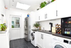 *The property benefits from a practical utility area, fitted with additional cupboards for extra storage. There is space and plumbing for both a washing machine and tumble dryer, along with a sink and drainer for added convenience. The room also provides space for a freestanding fridge freezer and features a door offering direct access to the rear garden—ideal for everyday functionality and outdoor access.