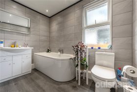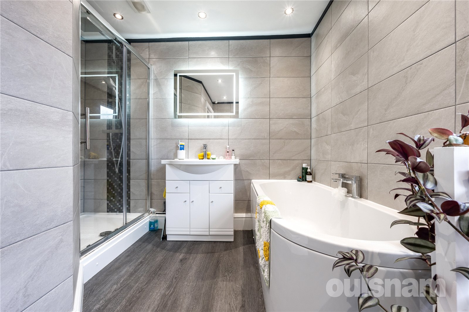 * Beautiful family bathroom with large bath, separate shower cubicle with rain shower fitment, vanity unit with wash hand basin and large LED mirror and low-level W.C.