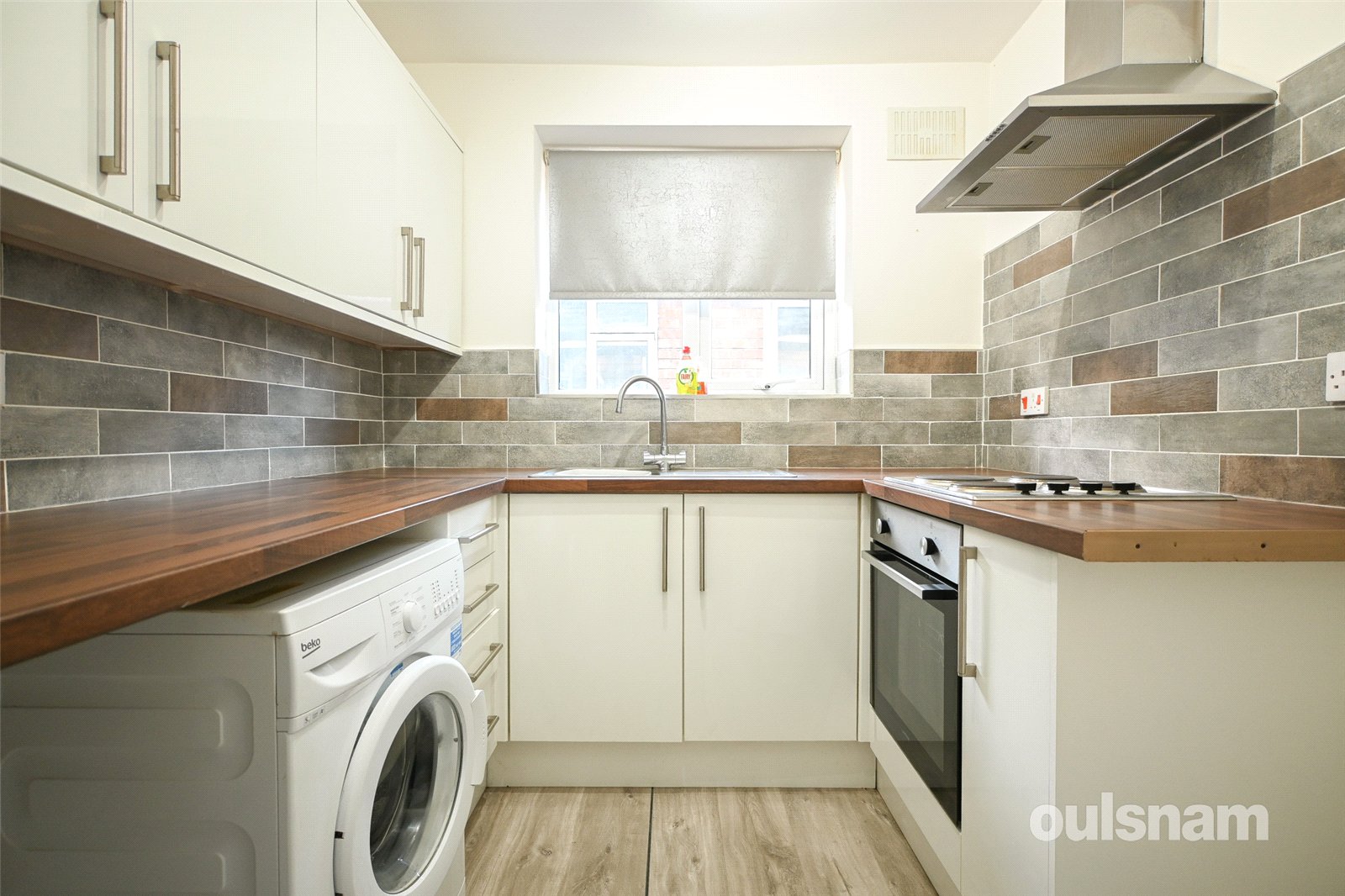 * Modern style kitchen with a range of wall and base units along with integral oven, hob and extractor