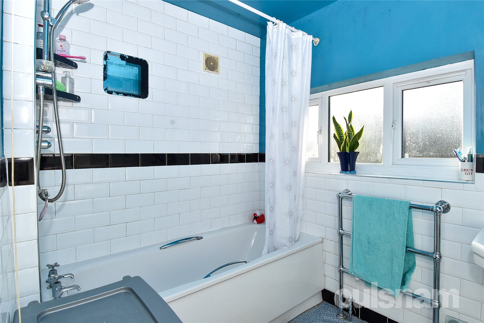 * The bathroom is fitted with a suite, including a bath with a shower over and a stylish freestanding wash hand basin. The layout offers both practicality and comfort, creating a bright and contemporary space ideal for everyday use.