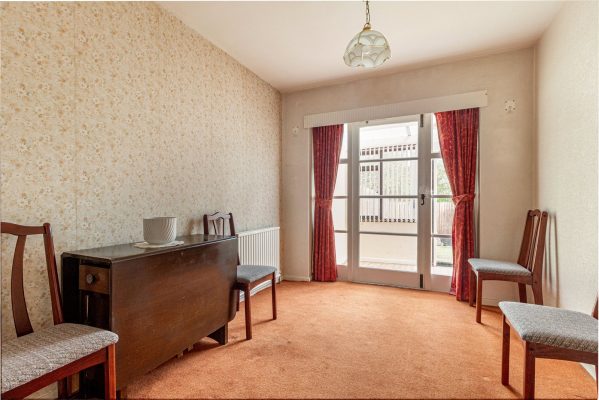 The lounge is spacious with the benefit of having a dining area. There is a double glazed window overlooking the front elevation and feature recesses. There is a door giving access to the dining kitchen;