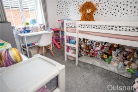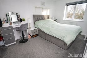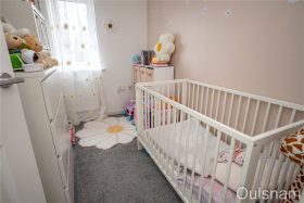 Bedroom three which has a window looking out to the rear of the property.
