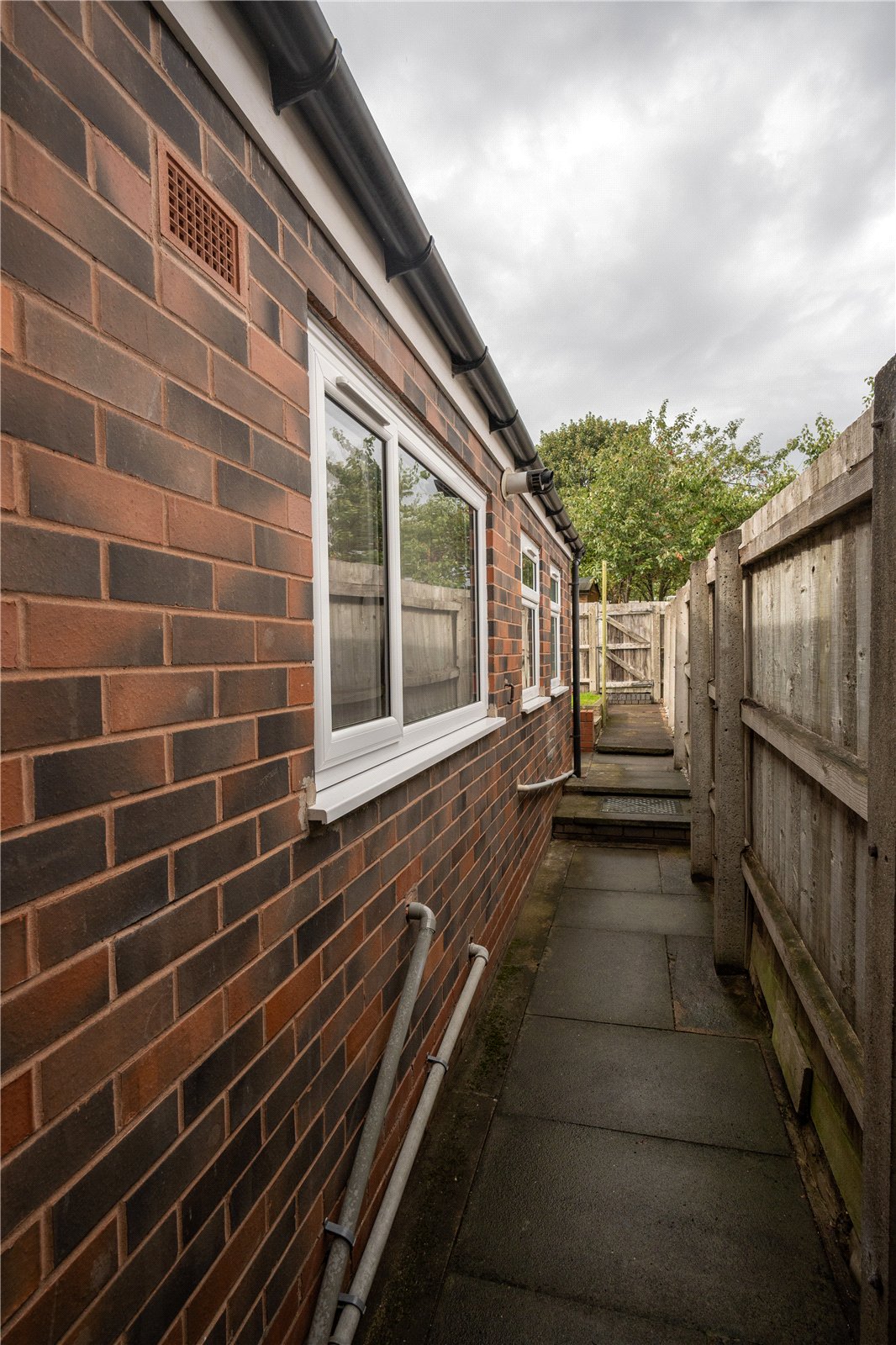 The rear garden is accessed from the kitchen and has a paved yard area and patio with brick retaining wall, lawned garden and access to a pedestrian walk-way.