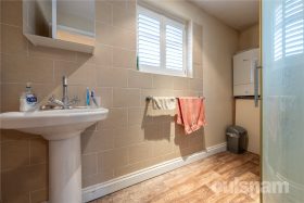 Adjoining the kitchen is a spacious utility room with matching units, space for an American fridge freezer, washing machine and tumble dryer. There is a window to the side aspect. Completing the ground floor is a modern wet room. A stylish and functional addition, perfect for guests or those needing accessible facilities.