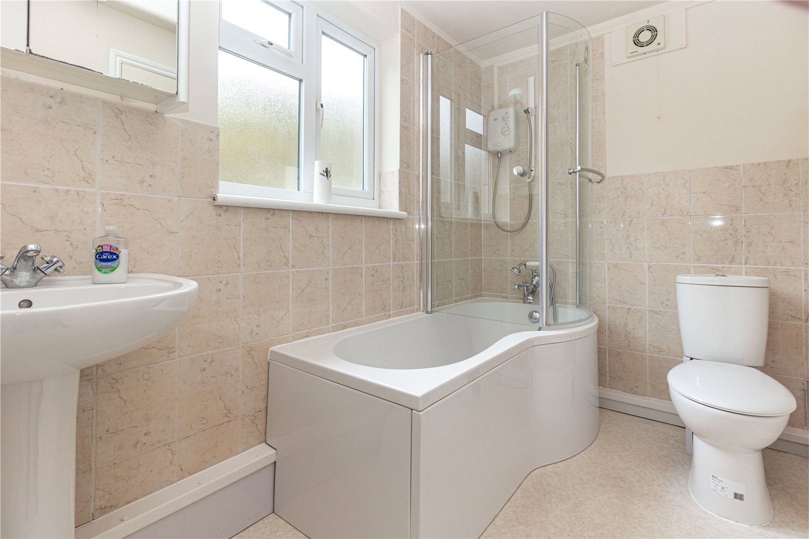 * Useful coat cupboard. Two further storage cupboards, one housing the boiler and the other with ventilation, ideal for tumble dryer.