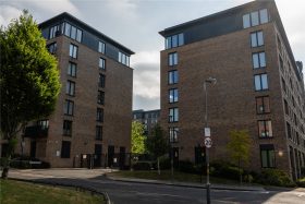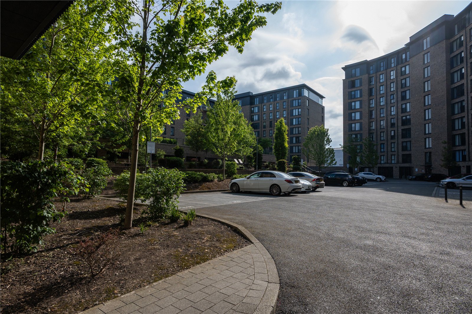 The property is accessed via electronically operated security gates leading to a central courtyard with an allocated parking space and communal gardens. A communal entrance door with security entry system leads to the entrance foyer with lift and stairs to the second floor.