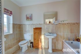 En-Suite which has a bath, an enclosed shower cubicle, a low level toilet, a wash hand basin and a window looking out to the side of the property.